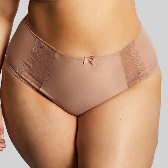 Sculptresse Esme Deep Brief to coordinate with the Esme Bra with a soft touch feel features an opaque front panel with Mocha Animal design. flexible stretch that moulds to your body.